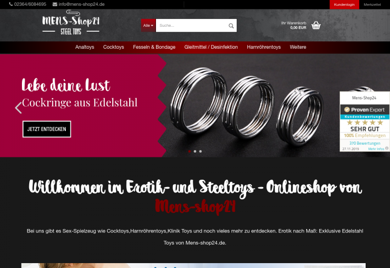 Mens-Shop24 ist ein Online Shop für Rotik- und Steel Toys. Mens-Shop24 bietetSex-Spielzeug wie Cocktoys, Harnröhrentoys, Klinik Toys und noch vieles mehr an.