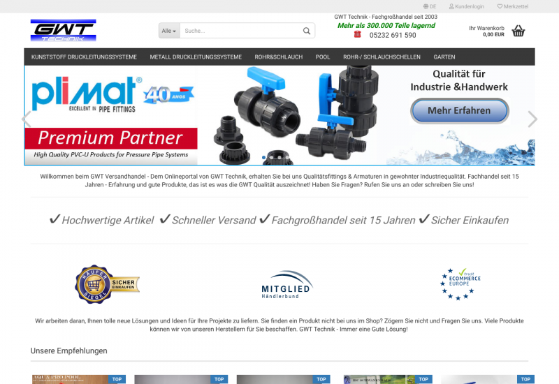 Groß´-/ und Einzelhandel für Wassertechnik. Fachhandel für Fittings, Armaturen, Teichbedarf, Pool & Schwimmbad. Als Systemlieferant für Bewässerungstechnik bieten wir Produkte rund um das Thema Wasserleitungen. Egal ob PVC-U, PE, Edelstahl, Messing im Bereich Fittings & Armaturen bieten wir eine Große Vielfahlt an Produkte. Neu bei uns im Sortiment: Gartengeräte von Krumpholz, Ecolat die ökologische Beeteinfassung und vieles mehr.