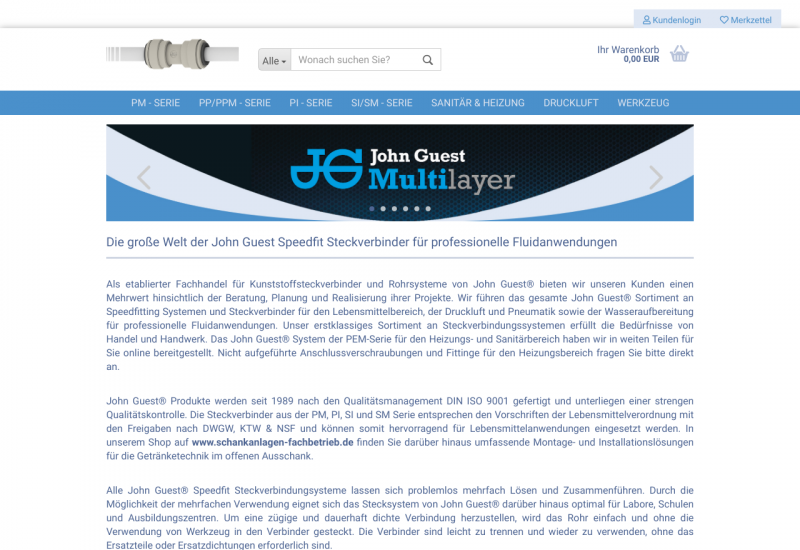 Fachhandel für John Guest Speedfitting und lebensmittelechte Kunststoffverbinder