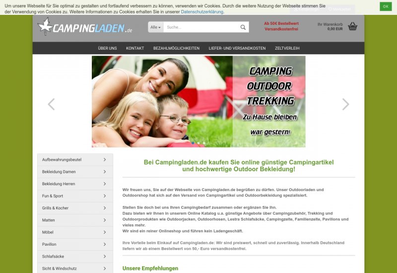 Campingladen.de ist ein Online Shop wo Sie (fast) alles fürs Camping finden. Wir bieten Ihnen gute und preiswerte Ware an.