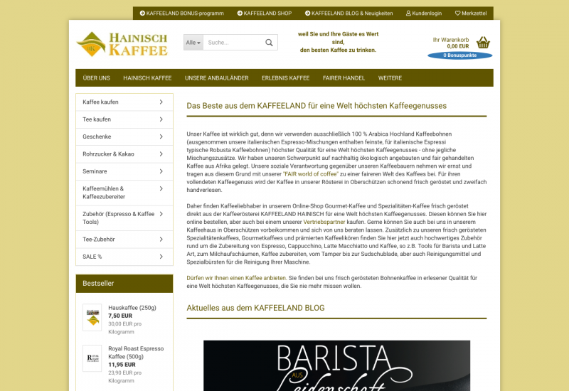 Spezialitätenkaffee frisch geröstet direkt beim österreichischen Kaffeeröster KAFFEELAND HAINISCH kaufen. Zusätzlich bieten wir Teespezialitäten, Seminare, Kaffeemühlen, Kaffeezubereiter, Zubehör für die Espressomaschine und den Barista und Teezubehör an. Im KAFFEELAND-BLOG gibt es zusätzlich Wissenswertes um den Themenkreis Kaffee zu entdecken.