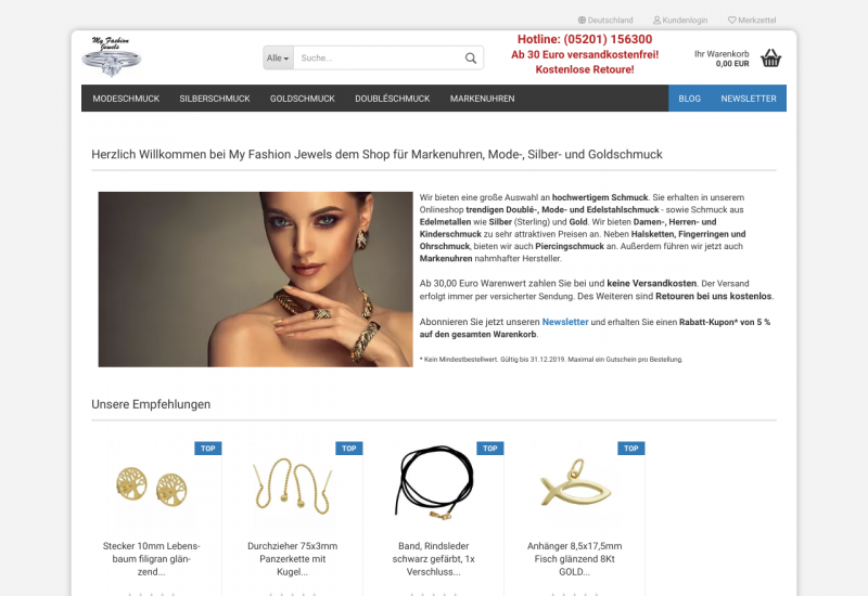 Wir bieten eine große Auswahl an hochwertigem Schmuck. Sie erhalten in unserem Onlineshop trendigen Doublé-, Mode- und Edelstahlschmuck - sowie Schmuck aus Edelmetallen wie Silber (Sterling) und Gold. Wir bieten Damen-, Herren- und Kinderschmuck zu sehr attraktiven Preisen an. Neben Halsketten, Fingerringen und Ohrschmuck, bieten wir auch Piercingschmuck an. Außerdem führen wir Dekorationsartikel zum Beispiel aus Glas.