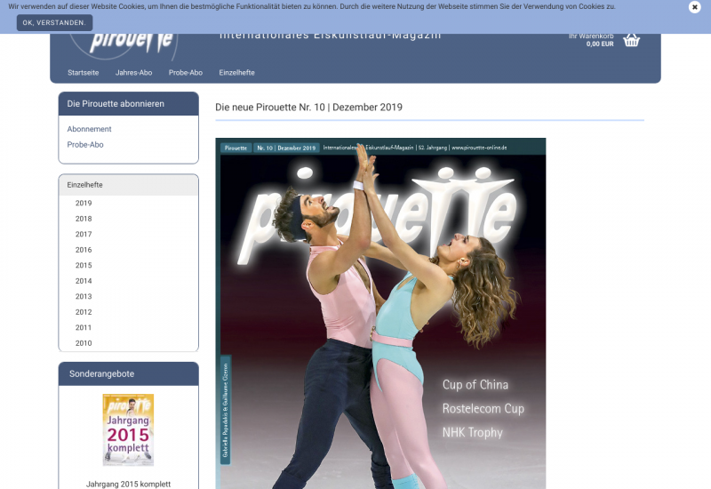 Die Pirouette ist seit 1968 das führende Magazin für Eiskunstlauf im deutschsprachigen Raum. Wir stellen die Stars der Szene vor, blicken hinter die Kulissen, porträtieren Persönlichkeiten, berichten über Resultate und Rekorde und nennen Daten und Termine. Seit über 50 Jahren!