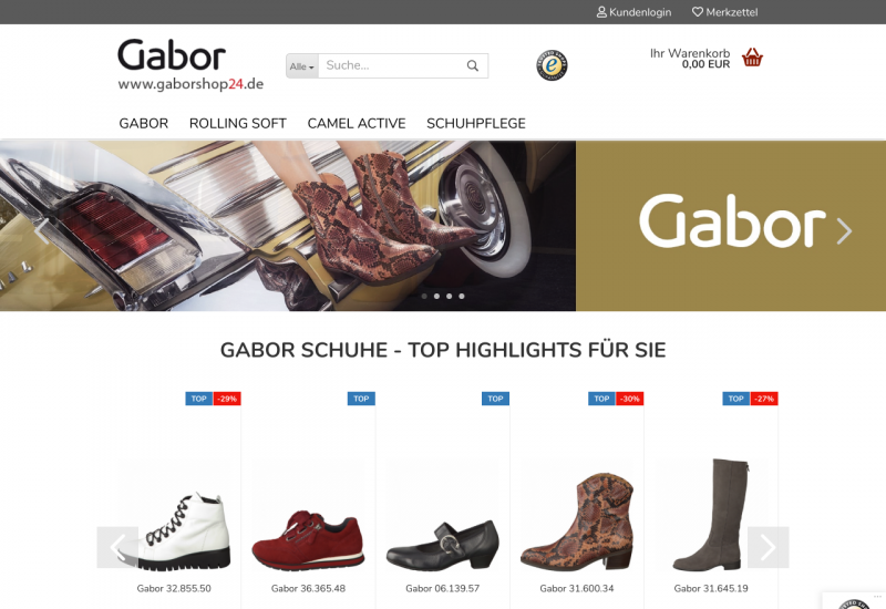 gaborshop24 wird betrieben von der F+V Schuhe Falkenberg OHG. Wir sind ein seit vielen Jahren erfolgreiches mittelständisches Unternehmen aus dem Bereich des Schuh-Fachhandels. Mit unserem Herstellerpartner Gabor haben wir uns ausschließlich auf Schuhe aus der Gabor Produktfamilie spezialisiert. Zu dieser zählen neben Gaborschuhen auch die Marken rollingsoft und camel active, die wir neben passenden Pflegemitteln und Zubehör im gaborshop24 anbieten. Neben unserem gaborshop24 betreiben wir auch vier stationäre Gaborshops in Erfurt, Leipzig, Günthersdorf und Dresden. So schaffen wir die perfekte Verbindung zwischen qualifiziertem Onlinehandel und stationären Fachgeschäften.