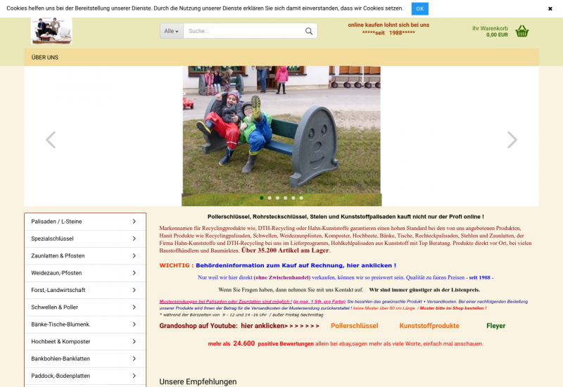 Pollerschlüssel, Rohrsteckschlüssel, Stelen und Kunststoffpalisaden kauft nicht nur der Profi online ! Markennamen für Recyclingprodukte wie, DTH-Recycling oder Hahn-Kunststoffe garantieren einen hohen Standard bei den von uns angebotenen Produkten, Hanit Produkte wie Recyclingpalisaden, Schwellen, Weidezaunpfosten, Komposter, Hochbeete, Bänke, Tische, Rechteckpalisaden, Stehlen und Zaunlatten, der Firma Hahn-Kunststoffe und DTH-Recycling bei uns im Lieferprogramm, Hohlkehlpalisaden aus Kunststoff mit Top Beratung. Produkte direkt vor Ort, bei vielen Baustoffhändlern und Baumärkten. Über 35.200 Artikel am Lager.