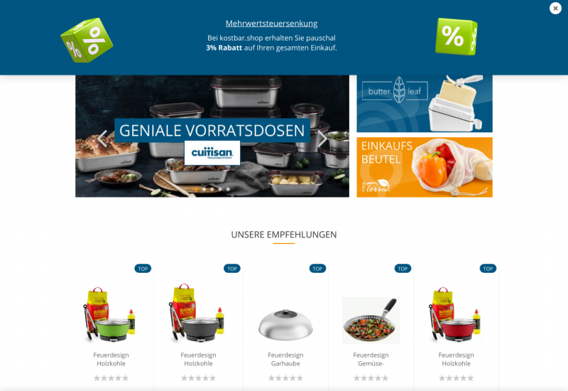 Der Shop bietet eine Vielzahl an teils außergewöhnlichen Artikeln rund um das Thema Kochen, Backen und Grillen. Neben Motiv-Teigrollen mit denen Sie im Handumdrehen zauberhafte Plätzchen kreieren, oder Vorratsdosen aus Metall, die für die Mikrowelle geeignet sind, bis hin zum kompakten Holzkohle-Tischgrill mit eingebautem Lüfter, bietet der Shop eine zunehmend größere Auswahl an nützlichen und kreativen Küchenhelfern.