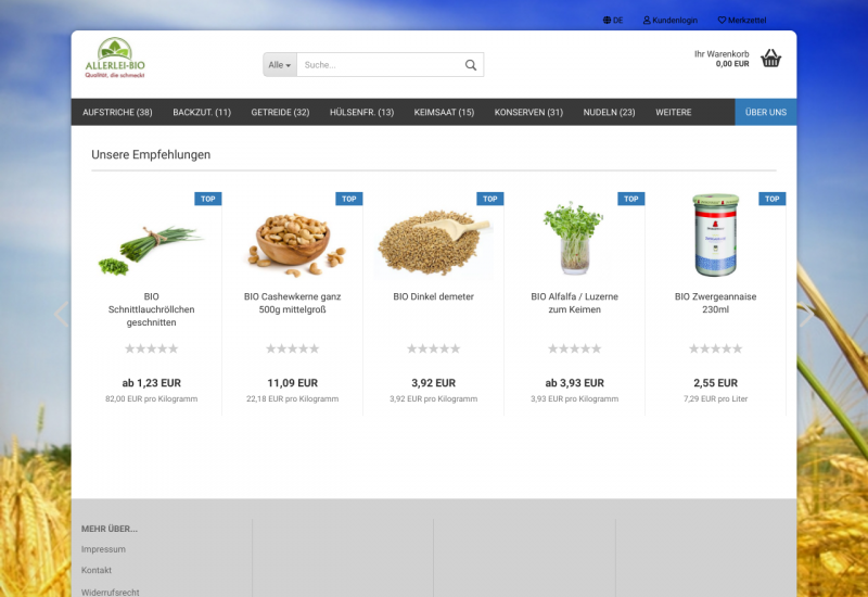 bio lebensmittel gewürze - getreide - getreideprodukte - hülsenfrüchte - saaten - aufstriche - trockenfrüchte - nüsse - konserven - und vieles mehr