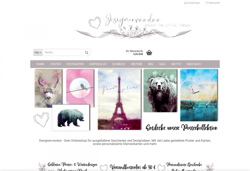 Designervoodoo bietet dir eine hübsche Auswahl an Geschenkideen. Mit viel Liebe gestaltete Poster und Karten, sowie personalisierte Sternenkarten und mehr. Bei uns findest man viele kleine Mitbringsel, wie zum Beispiel zauberhafte Schmuckstücke und Naturkosmetik.