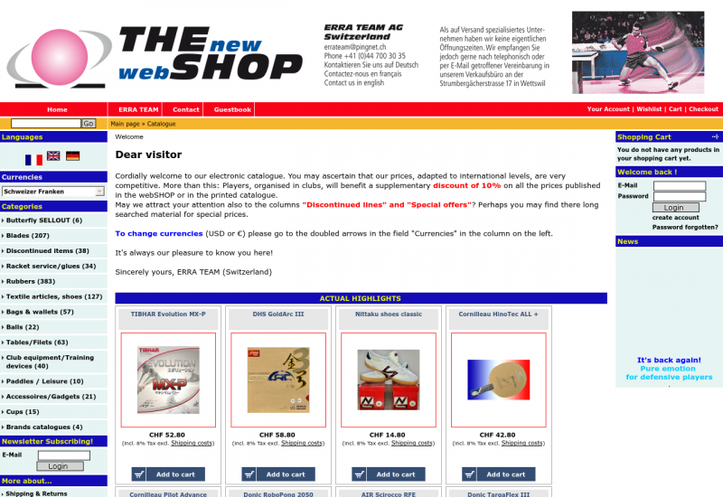 Alles für den Tischtennissport, vom Anfänger bis zum Vollprofi, vom Privatanwender zum Großverein.