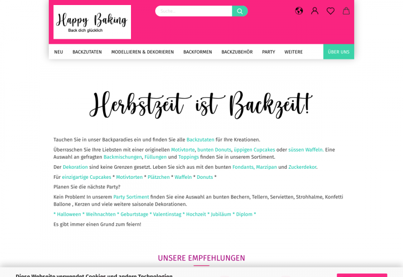 Der Backshop für Backfans! Sind Sie auf der Suche nach qualitativen Backzutaten, belgischer Schokolade, farbigen Streusel & Dekor? Oder doch nach ausgefallenen Backformen & Plätzchen Ausstecher für die nächste Backsaison? Planen Sie Ihre nächste Party und benötigen Sie noch eine schöne Deko?? Bei uns sind Sie goldrichtig! Tauchen Sie ein in unser Backparadies und lassen Sie sich für Ihr nächstes Projekt inspirieren! Wir wünschen Ihnen viel Spass Ihr Happy Baking Team