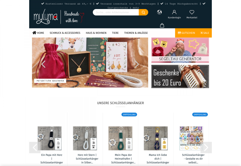 MyLuma.de 2018 gegründet, erstellt Individuelle Gastgeschenke, und Maritime Segeltau Schlüsselanhänger mit Signaturen die zu dir passen. Unser Sortiment wächst jeden Monat um Mind. 10 weitere Artikel im Bereich: Gastgeschenke und Handgemachtes.