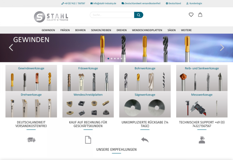 Wir haben eine breite Palette an Produkten für klein- und mittelständische Unternehmen in den Bereichen Gewinden, Fräsen, Bohren, Drehen und vielem mehr. An der Produktbreite arbeiten wir stets weiter, damit wir unseren Kunden eine noch größere Vielfalt anbieten können. In unserem Onlineshop finden Sie Werkzeuge für ein umfassendes Bearbeitungsspektrum: Fräser, Reibahle und Bohrer aus Vollhartmetall (VHM) oder Hartarbeitsstahl (HSS/E) sowie Gewindebohrer aus HSS-E/PM, Drehhalter, Bohrstangen, Wendeplattenbohrer und die dazugehörigen Wendeschneidplatten. Zuverlässige und nach Bedarf geeignete Schneidwerkzeuge mit einer hohen Qualität - genau für Ihre Ansprüche.