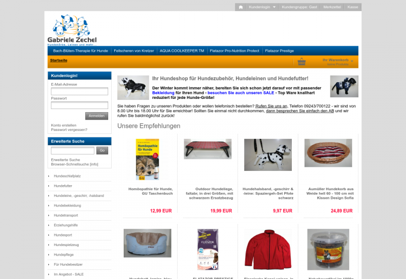 Alles für Hunde, von preiswert bis exclusiv, von gängig bis ausgefallen finden Sie in dem Onlineshop von Gabriele Zechel, Ihr Shop für Hundezubehör und Hundefutter.