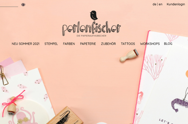 Katjas Wunsch war es, ihre Stempel marktplatzunabhängig verkaufen zu können, daher ist sie bei Gambio goldrichtig. Für ihren Shop perlenfischerdesign.de fotografiert sie selbst und ist mittlerweile Profi darin, die wunderschönen, handgefertigten Produkte ohne Fotostudio und Lightbox in Szene zu setzen.