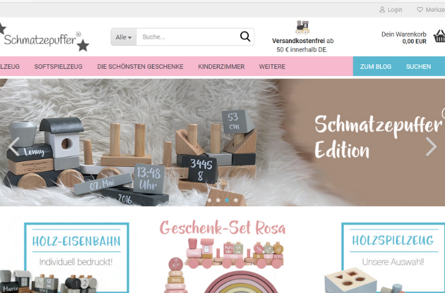 Schmatzepuffer ist ein toller Shop, der sich wirklich sagenhaft entwickelt hat. Als Gründerin Nadine mit ihrem Partner Frank auf einer Messe mit der Spielzeug-Firma Little Dutch in Kontakt traten, kam der Gedanke auf, Holzspielzeug-Produkte, wie beispielsweise die Holzeisenbahn, personalisiert anzubieten. Ein voller Erfolg, denn seitdem ist aus Schmatzepuffer ein mittelständisches Unternehmen mit mehreren Standorten und großer Produktionsfläche geworden. Wir freuen uns, dass sie Gambio treu geblieben sind und auch die Zukunft mit uns planen.