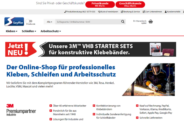 Unser Shop des Monats April 2021, ein Handelsunternehmen für Qualitätsprodukte in den Bereichen Klebetechnik, Oberflächenbearbeitung und Arbeitsschutz, hat während des vergangenen Jahres aus der Not eine Tugend gemacht: Da es während der Corona-Pandemie für Seyffer nicht länger möglich war, ihren Kunden direkt vor Ort im hauseigenen Klebelabor die Produkte und Verfahren zu präsentieren, haben sie kurzerhand ein TV Studio eingerichtet, aus dem sie nun ihr Business virtuell zum Kunden bringen.
