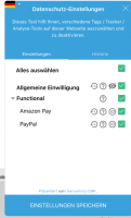 Klar, soweit verstanden. Ich habe eben mal zum test PayPal und Amazon Payment deaktiviert und ich konnte noch immer bezahlen. Ich dachte weil ich ein Script eingebunden habe werden die Anfragen an die gesendet, ausgewertet und ggf gestoppt. Dem scheint entweder nicht so zu sein oder die elementaren Dinge die für eine Zahlung notwendig sind werden dennoch durchgelassen. Prive ist das featured tool von IT-Recht Kanzlei. Wobei das auch eine art Marketingmaschine ist. Da kommen so windige Mails von einem Rechtsanwalt Lev Lexow der einem Angst machen will ...