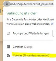 Mit der Zahlung ist es etwas anders, Die Cookies sind für die gewählte Zahlart notwendig. Will man mit PP Zahlen, muss man das Cookie erlauben. nimmt man aber Vorkasse, könnte man das auch sperren.