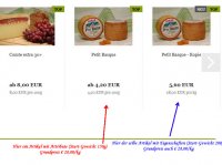 Es gibt tatsächlich Kunden, die die selbe Menge 2 oder 3 mal kaufen möchten. Grund: der Kunde möchte den Käse "Comté" in 200g Stücke geschnitten aber 3 Mal vakuumiert. So kann der Kunde bei Bedarf den vakuumierten Käse aufmachen. Ich sehe die Berechnung in "Top-Products" als ein Bug. Da in "Top-Products" die Berechnung des Grundpreises sollte anhand von "options_value_weight" und "weight-prefix" PLUS "VPE" des Produktes berechnet werden. So wird es auf alle anderen Ansichten wie z. B. "Produkt-listing" und "Artikeldetailseite" gemacht. Da werden auch die Preise richtig gezeigt, wie es auch sein sollte, nur in dem Ansicht "Top-Products" (unseres Empfehlungen) werden die Preise von Artikel mit Attributen, die eine andere Start-Wert haben als "VPE" und "Wert" des Produktes falsch berechnet. Da die "$module_content" oder "$module_content_html" die Darstellung übernimmt, muss in dieser variabel die Attribute außer acht gelassen worden sein.