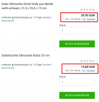 Hallo, sorry, wenn ich in der falschen Rubrik bin, ich wusste aber nicht wo das hingehört. Ich habe gerade festgestellt, dass einige Produkte auf einmal einen Steuersatz von 39% haben. Ich habe mir beide Produkte vom screenshot mal angeschaut. Bei dem mit 19% ist der Standardsteuersatz (national) hinterlegt und bei dem Produkt mit 39% ist der Standardsteuersatz (EU) hinterlegt. Ich habe beim Anlegen von Artikeln nie etwas am Steuersatz geändert. Auch in der Übersicht wo alle Steuersätze hinterlegt sind, ist nirgends 39% hinterlegt. Ich weiß nicht wie Gambio auf diesen Wert kommt. Das muss auch ganz neu sein, denn bis vor kurzem hatte jedes meiner Produkte einen Steuersatz von 19%. Hat jemand eine Erklärung was passiert sein kann? Danke schonmal im Voraus. VG Sven